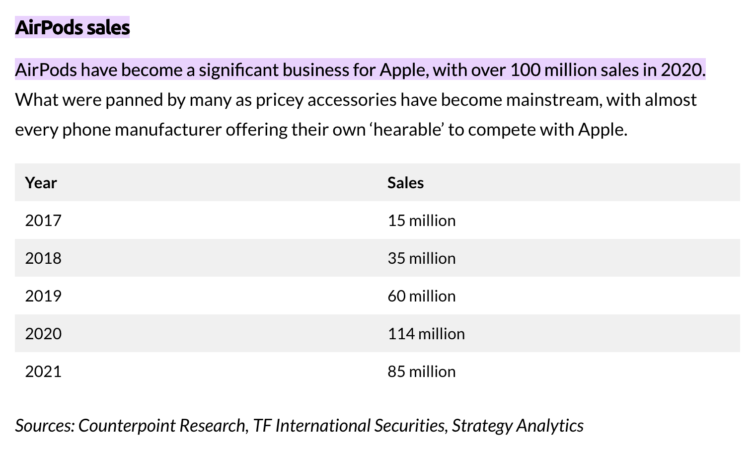 When personal experiences with AirPods have such a profound change on how I consume content, mapped with industry trends pointing to a large market adoption, it is another great example to double down on compounding content. Naval Ravikant, an entrepreneur, investor, and respected thinker shared an insightful quote: “Code and media are permissionless leverage. They’re the leverage behind the newly rich. You can create software and media that works for you while you sleep.”